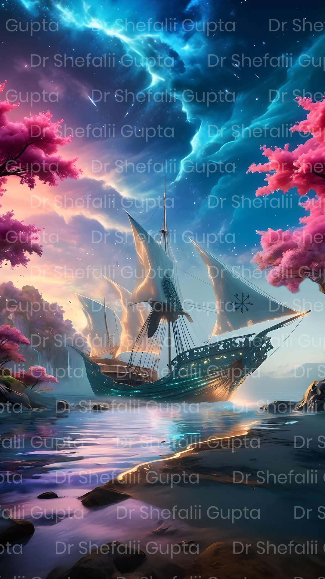 Glowing Ship & Sky: Signify divine support guiding your path even through darkness.